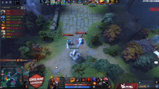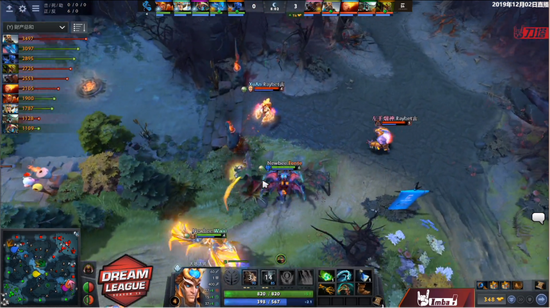 进入中期,特别是在10分钟白天之后NB便失去了节拍,发育不良的军团也在补经济,LFS逐步掌控了地图。15分钟,LFS强势打盾,夜晚的夜魔也不敢过来接团。拍拍拿到盾之后LFS追出来击杀了军团,团队经济抢先来到5k。