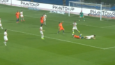 8月15日讯2020年中超联赛第5轮山东鲁能对阵深圳佳兆业进行到第62分钟,鲁能前锋郭田雨飞铲深圳后卫姜至鹏,裁判吹罚犯...