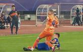 7月31日讯2020年中超联赛大连赛区第2轮,江苏苏宁对山东鲁能比赛进行到第27分钟,江苏苏宁中场谢鹏飞禁区前射门被守门...