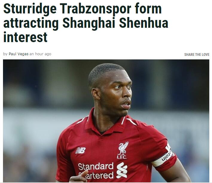 北京时间12月22日,据外国媒体tribalfootball报道上海申花正在积极争取在一月份签下现效力于特拉布宗体育队的英格兰前国脚丹尼尔-斯图里奇(Daniel Sturridge)。 外国媒体在文章当中表示,斯图里奇在特拉布宗体育表现得非