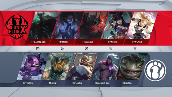 iG破掉FPX的中上高地,随后在高地上击杀了铁男与拉克丝,iG直接冲泉水团灭FPX,将比分扳平。