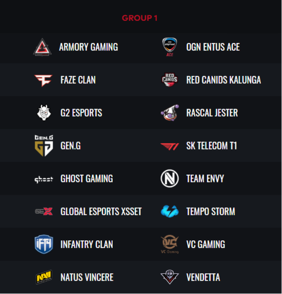 2019绝地求生全球总决赛聚集了来自世界各地的最强PUBG战队,以下32支团队将分红两个小组在本周末的小组赛中一展拳脚: