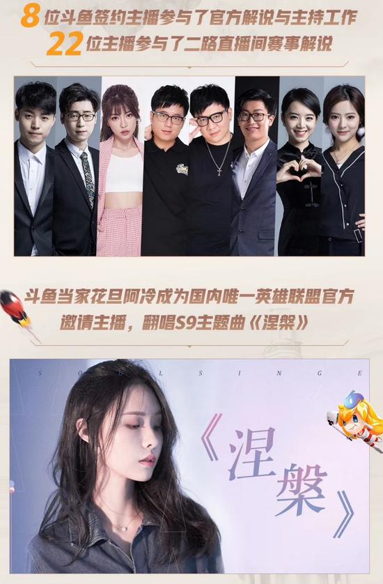 值得一提的是,斗鱼当家花旦阿冷更是成为了国内独一英雄联盟官方约请主播,翻唱了S9主题曲《涅槃》。此外,为了进一步提升S9的影响力、为中国战队加油,斗鱼还先后制造了100多条赛事视频,让观众随时能够经过官网、游戏客户端、斗鱼视频站、抖音等平台回味赛事精彩镜头。截至目前,这些视频的总播放量曾经超越了2亿人次。