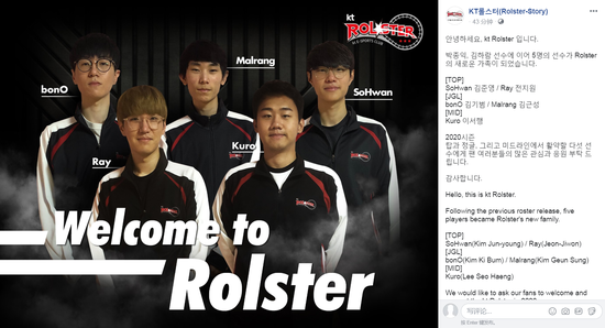 随后,KT在脸书上官宣了新赛季的新选手,除了Ray加盟之外,还有此前从BLG分开的Kuro。