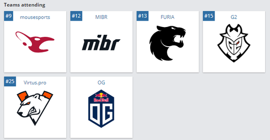 由Aleksib所率领的OG战队将会面临诸多一线队伍的应战,另外五支参赛队伍分别是mousesports、MIBR、FURIA、G2和Virtus.pro