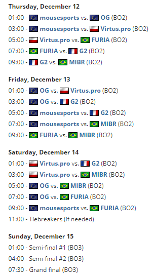 排名前四的队伍将升级到 BO3 的单败淘汰赛中。若积分相同则会停止加赛。