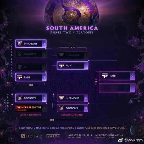 南美赛区一向是垫底的存在,就连之前的南美霸主Chaos战队也由于Major的折戟而土崩瓦解,往常崛起的paiN和INF接替了Chaos的霸权。而在小组赛阶段,INF和paiN以6-1和5-2的战绩轻松升级,本以为INF会坚持着小组赛的势头成为南美赛区的黑马,但是paiN用两场耐久的战役粉碎了INF杀入决赛。paiN势必要在决赛上证明:南美的霸主只要他一个!