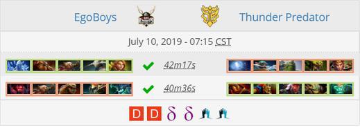 最后是淘汰赛的败者组竞赛,EgoBoys与Thunder Predator的两场竞赛中,中单和一号位都是打出了各自的圆满节拍,早早进化成怪物的流行和黑鸟不时杀人拿塔扩展优势,EgoBoys在不时的滚雪球效应下较为顺利地拿下了成功,Thunder惨遭淘汰。南美区的决赛将在明日早上5点停止。