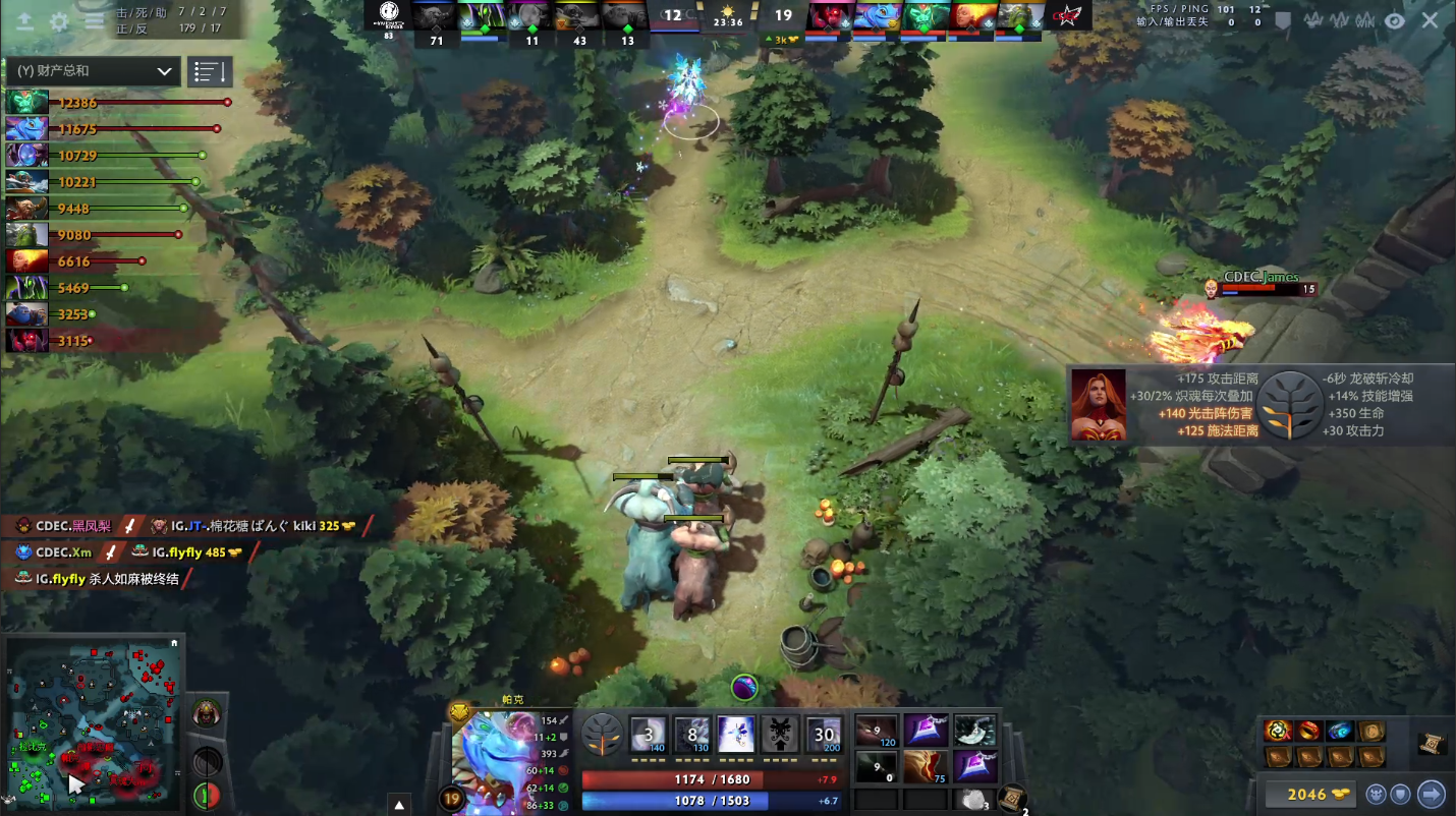 前期CDEC仰仗着火女强大的线上才能选择刚IG优势路的三,对剑圣停止压制。中路的绝活宙斯补刀圆满,还在前期对拼的时分一个C打断了DP的大药,打得DP十分难受。下路人马和骷髅王还是一个稳定发育的对线。对线期两边又打了个势均力敌,CDEC的牛头十分肥,经济排在全场第一。
