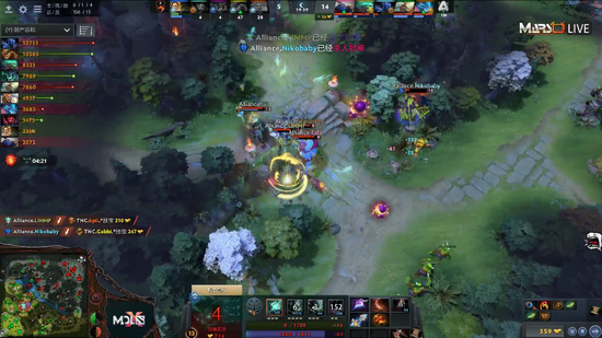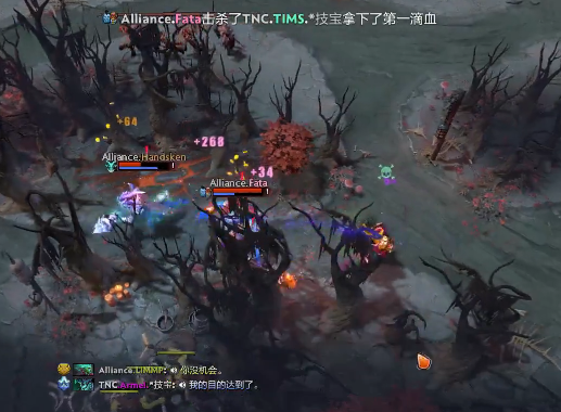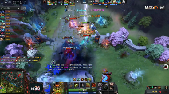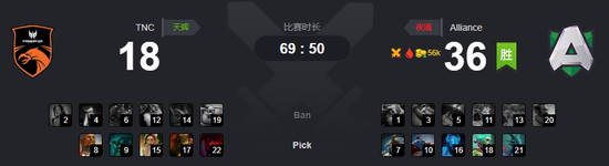 9分钟,全能再遭夜魔带双辅助的强杀。四分钟后,A队双辅助想要寻觅小节拍,却不料撞见了TNC的大部队,双双交代在了河道。17分钟,在TNC击杀拉席克之后,拉席克交出买活带A队吹响反攻号角。DP开启大招配合陈的召唤物和十足的奶量,夜魔开大切入,将TNC打成四人团灭。