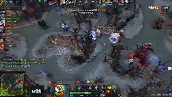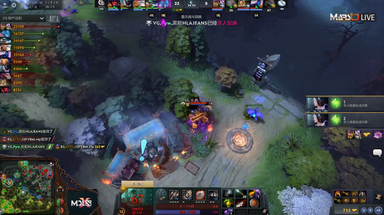 20分钟,双方迸发团战,天辉夜魇两边的二三号位悉数阵亡。两分钟后,VG再度重拳出击,固然没能击杀炼金,但EG的双酱油却倒在了VG的输出之下。