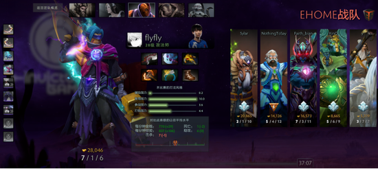 说了那么多,其实这局竞赛和宙斯、火猫、德鲁伊的关系都不太大,真正的主角是鼠皇的敌法师。固然在之前的文章中有提到,打野掉配备对均衡性不会有太大的影响,但是在看了更多的竞赛后,我发现了敌法师这个例外。新版本发布前,敌法师的问题是真空期太长——特别是在刚拿到狂战斧后最初的非常钟里,敌法师简直没有任何参战才能。和抢手的飞机虚空一比,敌法师的中期战役力弱的几乎不像是一个英雄。但是在刷出四个大件后,自带切入的敌法师还是一个靠谱的中心英雄。说回新版本,假如“打野掉配备”对虚空飞机而言只是如虎添翼,那么对敌法师来说,这就是雪中送炭,这点在本局竞赛中表现的十分明显。拿到狂战前,鼠皇身着“怀旧三件套”——打野爪、穷鬼盾、天鹰戒,这三件配备进一步加强了敌法师的伐木效率。差不多在动手狂战的同时,鼠皇又出了吸血鬼之牙,这个配备相当于是单人祭品,使敌法师的刷钱速度又上了一个层次。等EHOME认识到问题的存在时,一切都太晚了。