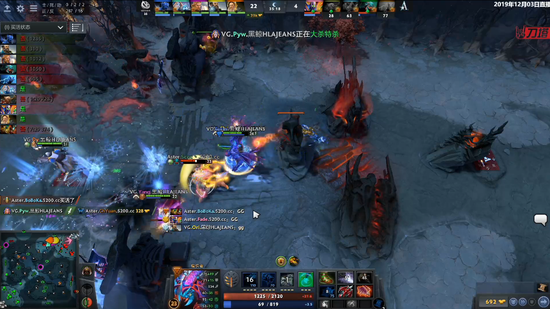 天辉方 VG:中单船长,大哥夜魔,三号位全能,双辅助光法和冰女