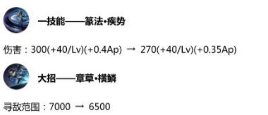 上官婉儿同样也是削弱,1技能的伤害变低,大招的寻敌范围也降低了,那么无论是消耗能力还是后期的切入都没那么强势,特别是大招,看上去寻敌范围只是降低了一点,但也许就是这么一点就切不到脆皮了。