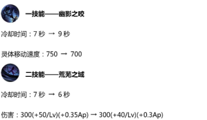 后羿2技能的伤害从400(+40/Lv)(+0.5Ad)降低到300(+50/Lv)(+0.5Ad),同时外圈减少的移动速度也从50%降到了30%,这个削弱还是很明显的,特别是前期的消耗能力降低了不少,对发育自然也有一定的影响了。