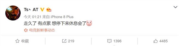 游戏频道:阿泰深夜发博感慨想休息 猪苗力挺太暖心
