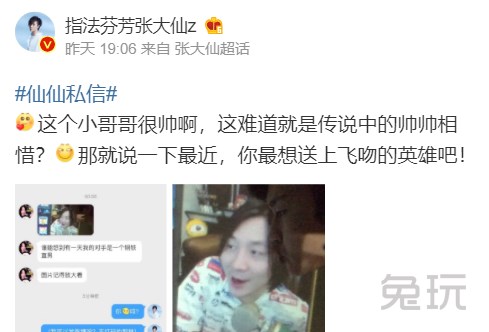 张大仙表示这个小哥哥很帅,并且称这波互动是“帅帅相惜”,这句话引发了粉丝的强烈吐槽。粉丝表示“脸皮是个好东西但他也不能太厚”,精准吐槽。