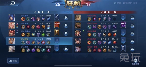 最后一场比赛由暨南大学UV与华南理工大学GKD对战,暨南大学UV截至目前仅胜了一小局,华工大GKD则是三胜一负一平。首局暨南大学拿出功能性中单姜子牙来应对GKD.折柳的张良中单,前期在暨大UV橘右京与廉颇的节奏下,GKD中野没有打出效果导致前期失利。不过在边die关羽带线以及狄仁杰、张良清线下,将比赛拖到了后期。在最后一波团战中UV.再来公孙离打出天秀操作赢下比赛。