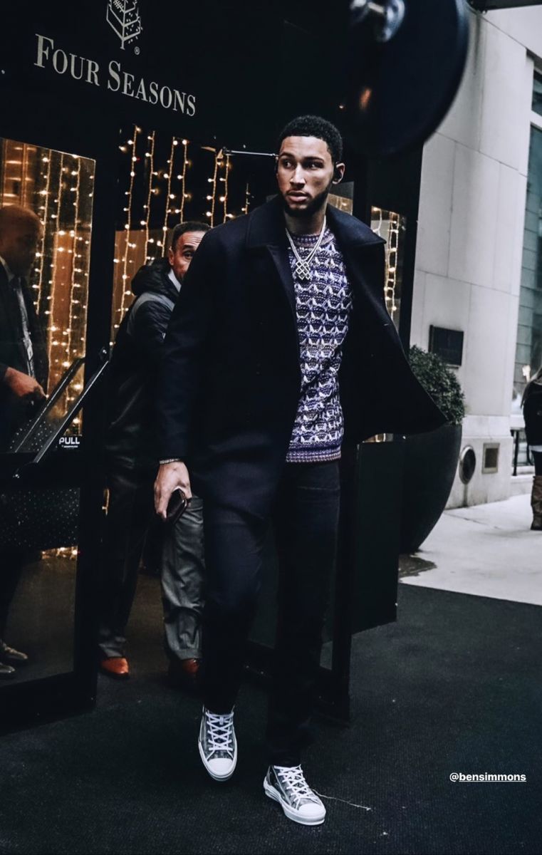看球新闻:今日潮男来袭:西蒙斯冷峻黑帮风,拉塞尔精致休闲范儿