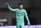 9月3日讯2020中超联赛大连赛区第8轮山东鲁能对阵江苏苏宁比赛进行到28分钟,鲁能后卫郑铮传中,苏宁门将顾超接高空球脱...