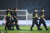 9月15日讯“西北望看台”在微博晒出了华夏与国安一战裁判在安保人员护送下走下球场的照片。本场比赛...