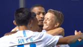 9月14日讯今晚,大连人迎战上海申花。第32分钟,拉尔森倒地传球,龙东禁区外得球后大力抽射,皮球直挂死角破门!大连1-0...