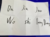 9月6日讯今天,记者汤幸在个人微博晒出了大连人外援龙东用拼音给大家带来的问好。龙东在纸条上写道:“Da ji...