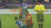 10月18日讯上港与申花的比赛中,第70分钟,彭欣力抱摔胡尔克染黄。...