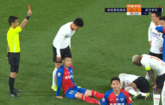 11月2日讯2020中超保级组半决赛青岛黄海对阵武汉卓尔比赛进行到114分钟,黄海球员刘佳燊对马丁斯犯规,两黄变一红被红...