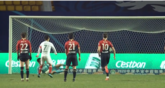 11月2日讯2020中超保级组半决赛青岛黄海对阵武汉卓尔比赛进行到点球大战,卓尔第一个出场的队长姚翰林一脚踢中门柱,卓尔...