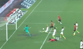 9月10日讯今晚,上海上港迎战青岛黄海青港。比赛第10分钟,胡尔克的任意球低平球进入禁区,但皮球在落入积水后减速,最终上...