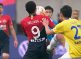 9月27日讯2020中超联赛大连赛区第14轮深圳佳兆业对阵江苏苏宁比赛进行到62分钟,苏宁球员杨博宇中场附近脚踹普雷西亚...