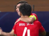 8月22日讯2020中超联赛苏州赛区第6轮北京国安对阵上海上港进行到第26分钟,上海上港前场定位球,奥斯卡助攻王燊超冲顶...