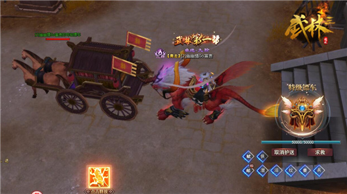 跨服任务每天可接取5次,进入跨服场景后,跟随小面板右侧指示到指定地点,击杀规定数量的怪物即可完成任务,获取奖励;押镖则是护送镖车,点击右侧的【护送】镖车护送,会自动传送至任务处,玩家便可与马驹一同行驶,护送货物。护送分为普通镖车、中级镖车、高级镖车以及特级镖车,奖励的量级也是不同的哟!重点是,你可以在这个跨服场景中率先结识到其他服的武林高手,一起坐下品茶谈天绝对不亦乐乎!