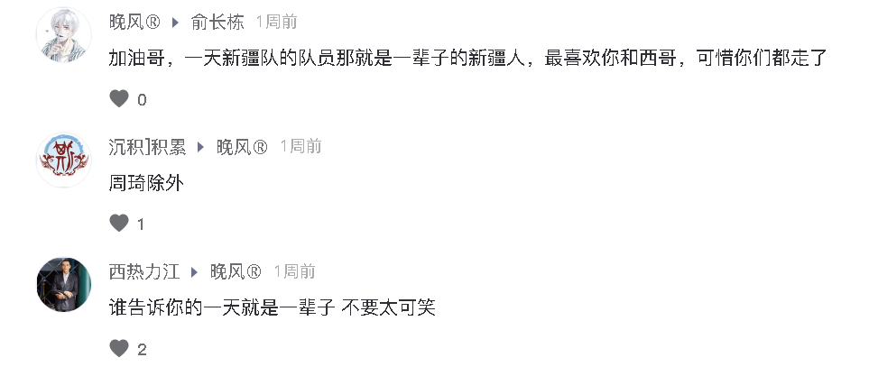 第二则消息关于西热力江,近日俞长栋在个人社媒中发布了一段自己的训练视频,在视频下方的留言中,有新疆队球迷表示俞长栋只要一天在新疆队打球,就是一辈子新疆队的球员,西热力江对此言论嗤之以鼻,吐槽说谁告诉你,一天就是一辈子。