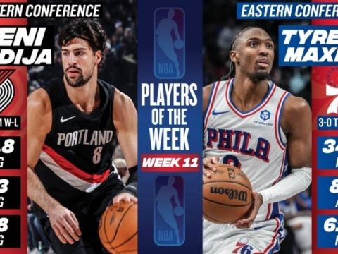 76人方面:恩比德28分、乔治23分、马克西22分、埃奇库姆13分、巴洛11分。