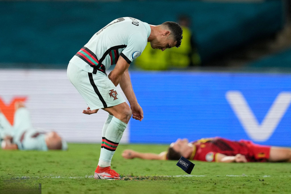 北京时间6月28日凌晨,欧洲杯1/8决赛第二比赛日焦点大战,比利时1-0力克卫冕冠军葡萄牙。至此,C罗的本届欧洲杯征程也宣告结束。本场比赛哨响后,作为葡萄牙队长,没能率队晋级的C罗显然非常失望,他扯下队长袖标摔在地上,自己也沮丧地蹲了下去,不免让人心疼。罗在本届赛事上状态依旧不错,4场比赛总共打进5球(其中3粒点球),并且还有1记助攻;截至本场比赛结束,还独自领跑本届欧洲杯射手榜。