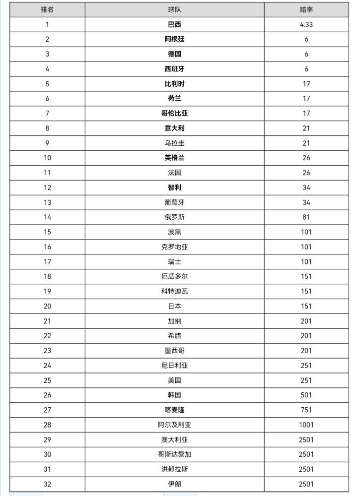 18年32强赔率,阿根廷排在第四,葡萄牙排在第七,差距已经大为缩小。