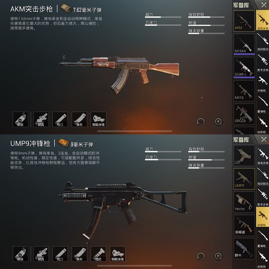 AKM不断以来被大家诟病的就是它的后坐力太高,稍一没压住子弹就要飞到天上去,但是再有了冲锋枪里的最全面的UMP9帮助之后,就有了质的飞跃。既能发挥AKM伤害高的优势,又能补偿稳定性的缺失。并且这套配备成型很快,很容易就都能满配,前期能协助我们快速翻开场面,是一个比拟万金油的搭配。