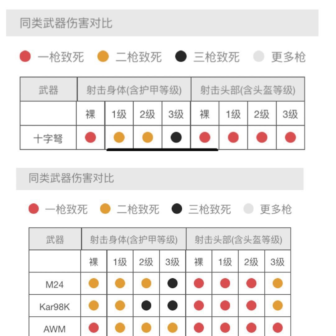 在对局中能形成的伤害上,十字弩能够一枪击杀没有装备防具的敌人,这一点在单发狙中同样只要神器AWM能做得到。在攻击头部上面,十字弩就更凶猛了,能够一枪点爆三级头。这一点98K可是望尘莫及,所以十字弩在伤害上能够说是平民版的AWM。