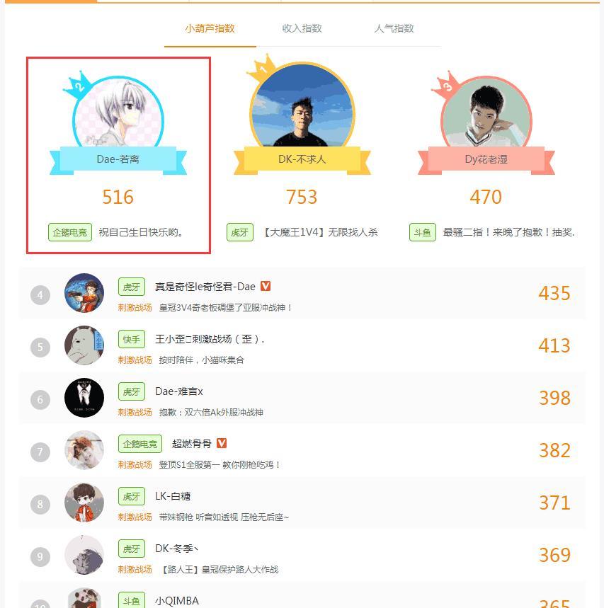 若离从直播到如今也是十分不容易的,开端都是小主播,然后为了粉丝,半夜清晨时断时续的直播才有今天的成就,昨天他的华诞会也是高潮不时,人气破百万,直接冲到了小葫芦指数第2的位置,其中有一把是排位到妹子一同玩,妹子想要苟,若离直接强行跳G港,落地成盒不要太happy。