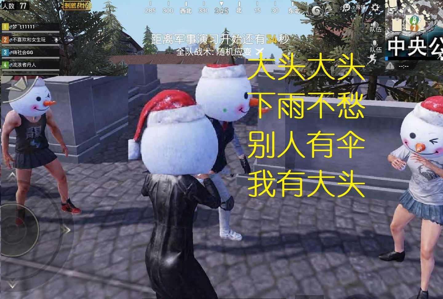 刺激战场只需被雪球砸中即会变成雪人头,在几秒后会恢恢复状,再次被击中照旧会有雪人头效果!置信以后在登机前再也不只是跳个舞、扔个苹果来热身了,由于在这里我们还能够来一场刺激的雪仗!