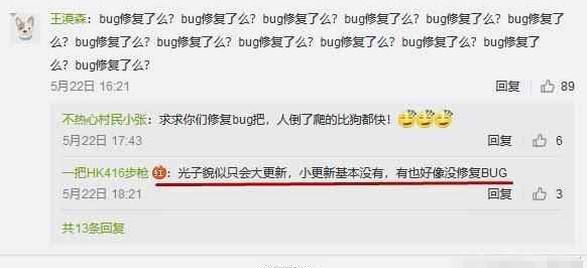 假如你经常去逛刺激战场的官博的话,你会发现一个有趣的现象,每次刺激战场有什么活动啊之类的,低下的评论清一色都是:bug修复了没?求求你们修复一下bug吧!的确刺激战场也被一些玩家们戏称为bug战场,数不清的bug让众多玩家的体验变的很差!