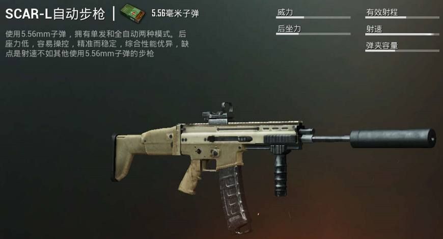 这把枪就是scar。scar这种自动步枪在地图中固然不是说有很多但是比M416来说还是挺常见的,对新手来说用起来是十分的帅,十分的稳的。关于刚落地就能捡到这把枪,我置信你曾经有了先天优势,这把枪相较其他步枪具有三点优势;