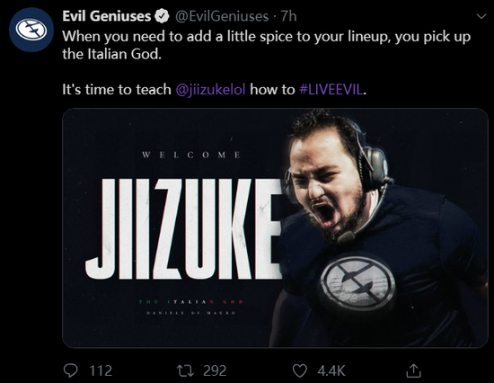 下赛季的LCS新军Evil Geniuses战队今日官宣了队伍新赛季的中单选手: