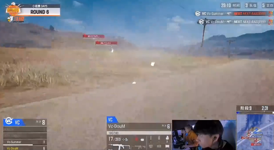 决赛圈来到大E东南,场上剩余3个队伍6生存,NEXT、VC 、AG三支队伍2打2打2 ,VC过马路前发现NEXT,击倒一人后,AG也参加进来带走NEXT最后一人,最后AG依托掩体将VC两人淘汰,祝贺AG两连鸡!
