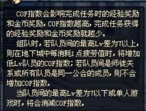 DNF北京时间2019年11月01日消息,说起COF值置信大多数老玩家都晓得,在当初假如和超越本人自身等级7级的玩家组队就会增加COF值,随着COF值的递增,玩家的经历获取和配备爆率也会随之降低。但假如是师徒之间或者同公会成员组