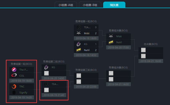 (注:官方之前发布的赛程有误,对阵表现已更新。TT将对阵TNC和Signify的胜者,KG对阵Pango和coL的胜者。)