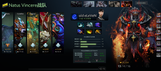 既然说到这,顺便还是来讲一下NAVI和KG的第一把,简而言之,那局竞赛就是老11的末日个人秀。对线期,末日统治了优势路。经济全场第一不说,还用高等级的烈火刀把谜团和小小烧的痛不欲生。而随着老鸡的幽鬼做出辉耀,狼哥的电魂更新BKB,NAVI就堕入了四面楚歌的境地。只能说在进入淘汰赛后,KG的手感是一天比一天炽热。三线同时开花,NAVI基本不是KG的对手。到了总决赛的第一把,老11的黯灭潮汐比起他的末日有过之而无不及。对线期,只见老11一个打两个毫无压力,阿杰的狼人被死死压住。19分钟黯灭祭品到手,ShowTime正式开端!中期,Mski的近战英雄压根就不敢近老11的身。走到身边一个锚击,那是不死也残。