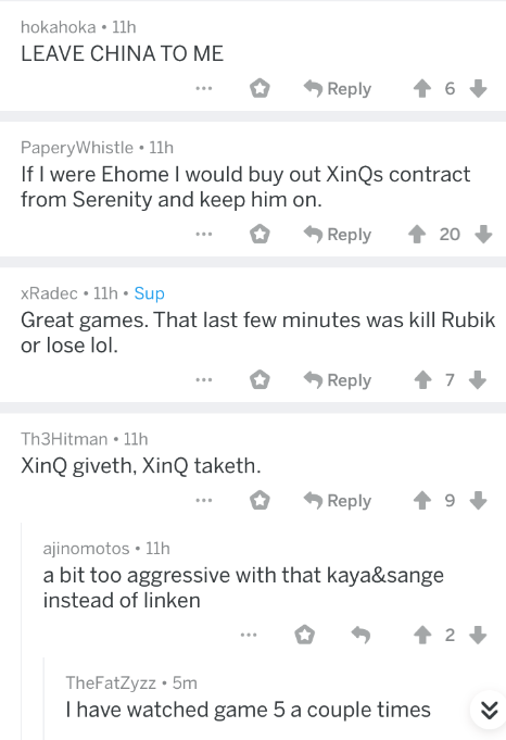 —他(指XinQ)几乎是神,但还是犯下了一些愚笨的错误。不过他的职业生活还有很长的路,他的潜力很大,可以生长为世界顶级的选手。